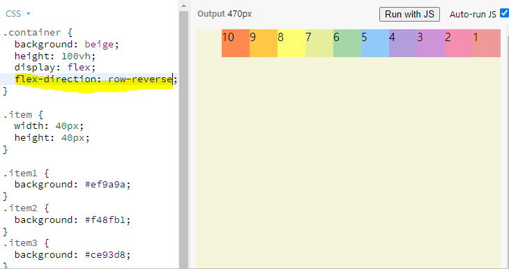 flex-direction: row-reverse 는 오른쪽에서 왼쪽으로