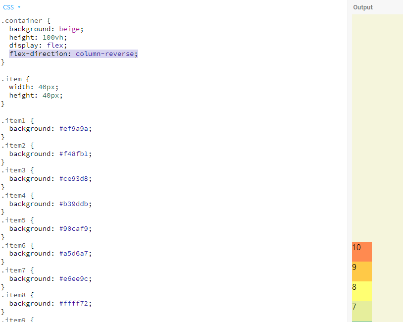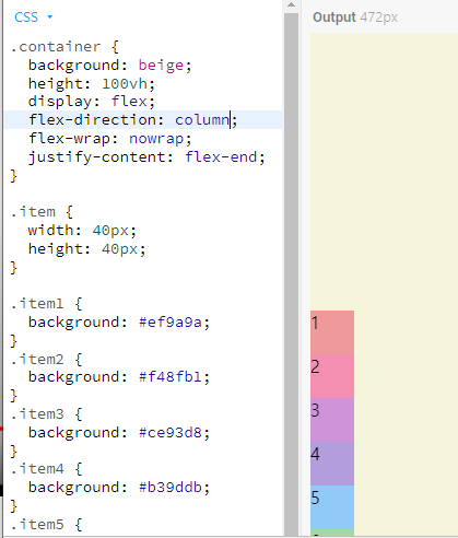 flex-direction: column-reverse 는 밑에서 위로