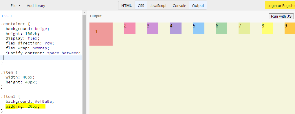 item1에 padding 20px 넣을때 item1의 숫자 위치가 다르다