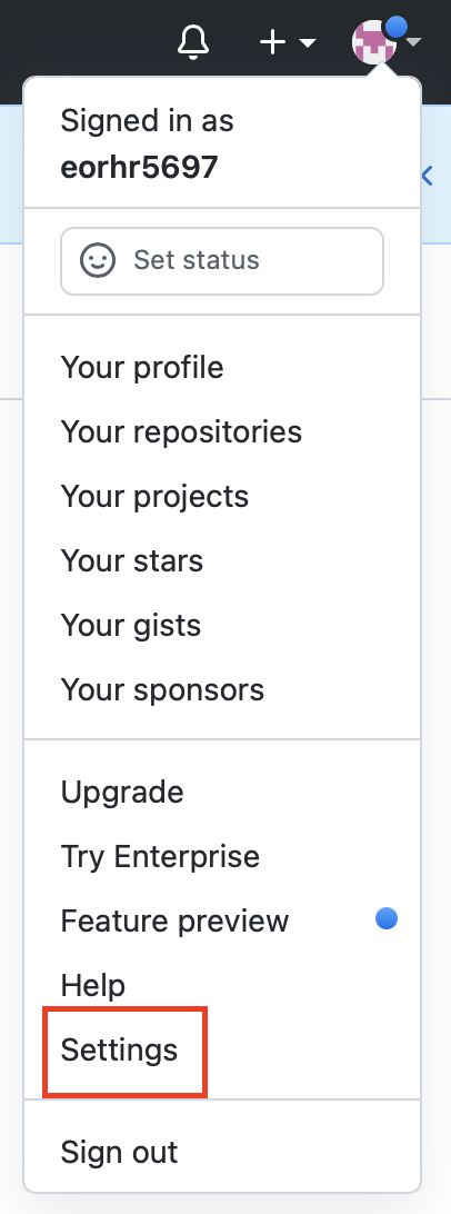 Personal access tokens 의 Tokens (classic) 선택하여 토큰을 만든다
