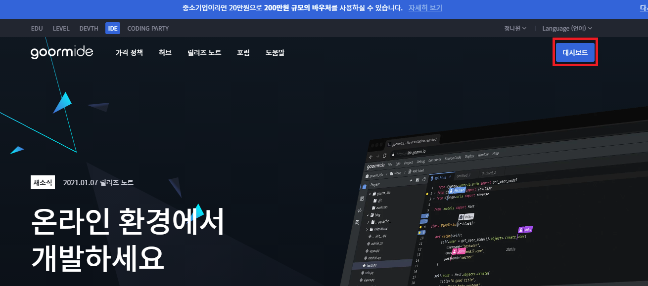 구름은 클라우드 기술을 이용하여 누구나 코딩을 배우고, 실력을 평가하고, 소프트웨어를 개발할 수 있는 클라우드 소프트웨어 생태계입니다.
