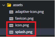 4. icon.png 와 splash.png 이미지를 삭제하고 등록할 아이콘을 가져온다.