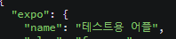 7. app.json 에 ios, 와 android 정보를 적어야하는데 가이드 것을 복사하여 app.json 하단에 붙혀 넣는다.