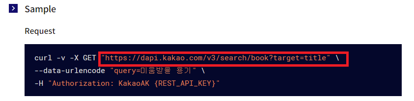 url: "https://dapi.kakao.com/v3/search/book?target=title"