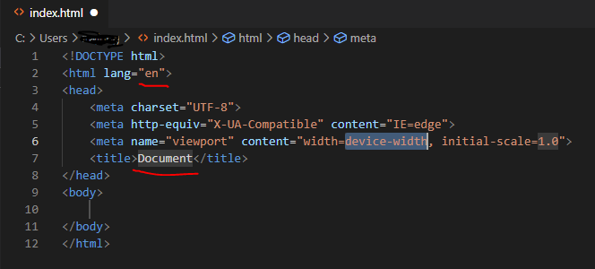 3. lang="ko" 로 변경하고, title 태그 사이도 이름 바꾼다.