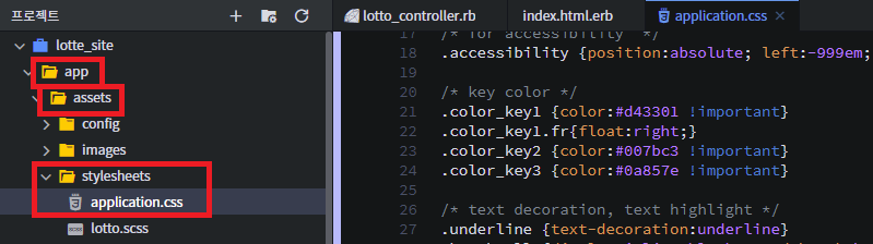 5. [app]-[assets]-[stylesheets]-application.css 에 붙혀넣는다.
